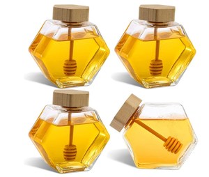 Embalaje de miel 100mL 180ml Frascos hexagonales de vidrio vacíos con tapas de metal Impresión de logotipo de color personalizado de grado alimenticio