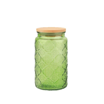 Tarro de almacenamiento de vidrio de color grande de 1000ml, diseño en relieve, serigrafía, impresión de logotipo, sellado de corcho disponible para el hogar